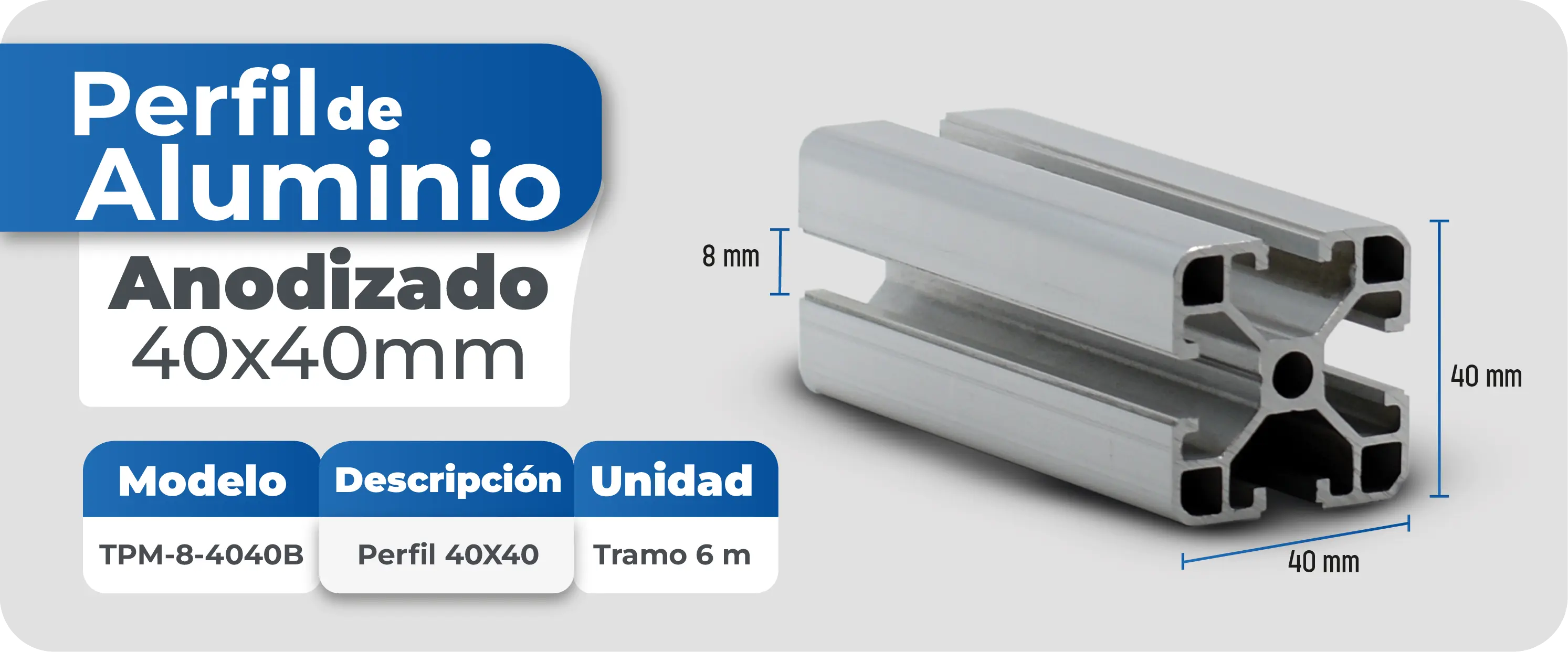 Perfil de aluminio 40x40mm
