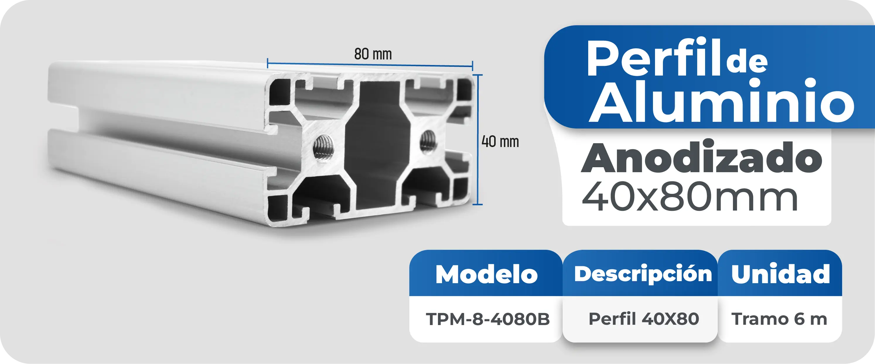 Perfil de aluminio 40x80mm